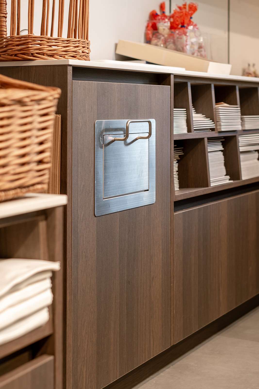 - wanden, kasten en ingewerkte afvalemmers voor keukenruimte